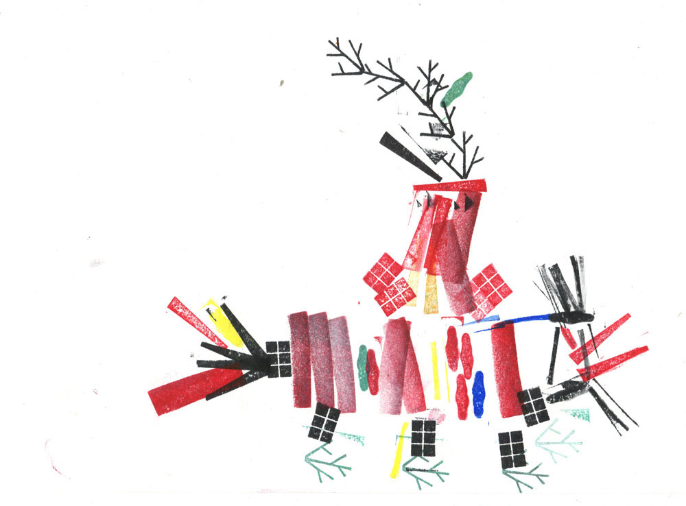 Играем вдвоем. Первый игрок бросает кубик, а второй делает штампом столько отпечатков, сколько очков выпало на кубике. После этого первый игрок дорисовывает отпечатки так, чтобы из них получились персонажи. Затем игроки меняются местами, и игра повторяется. Таким способом изобретаем 10 персонажей.