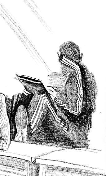 Сначала слушаем задачу, говорим об организации листа и о пространственной ситуации. Затем пробуем увидеть мир новым способом через тени и воплощаем это в листе. Рисуем на Тверской улице. Каждый час новая тема: человек, дома, животные.
