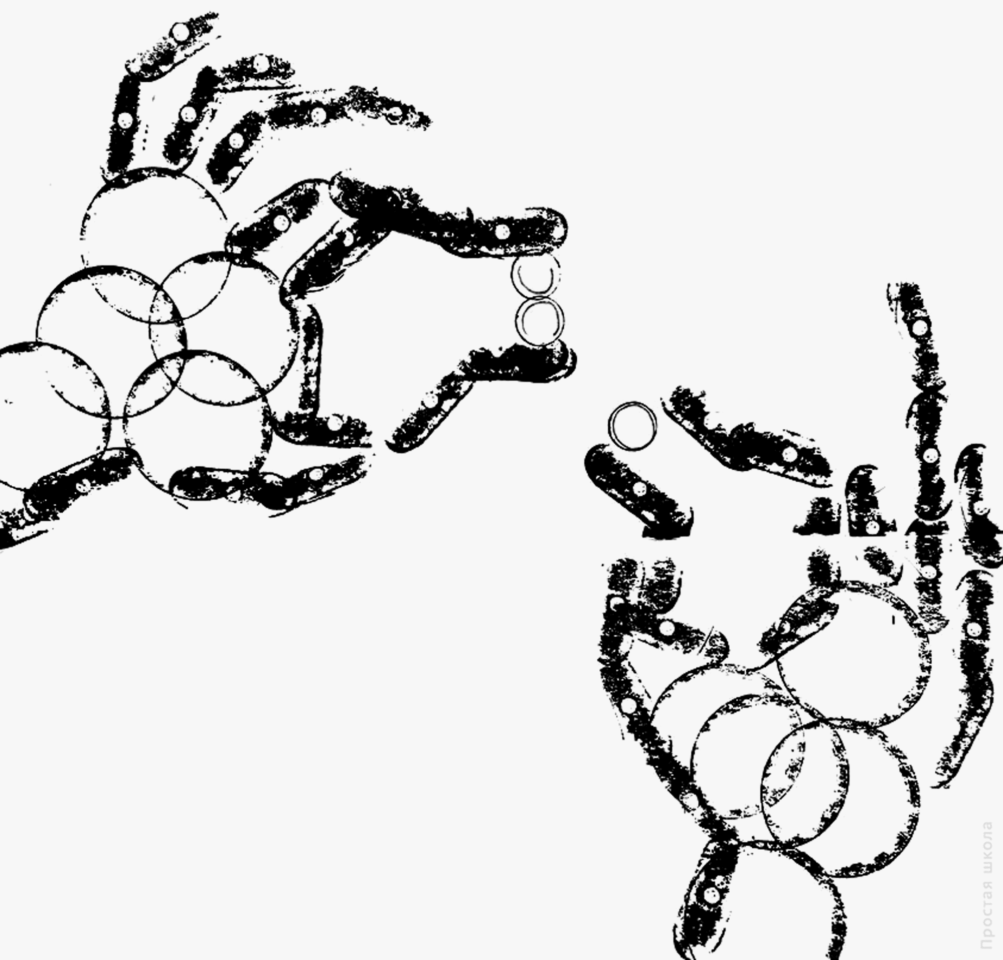 Работаем с условным цветом. Используем инструменты только двух цветов. Выполняем рисунки, назначая цветам роли.